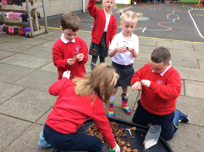 We have been busy making kites, hunting for shapes, taking turns during snakes and ladders, building modes of transport, threading autumn leaves and making patterns.