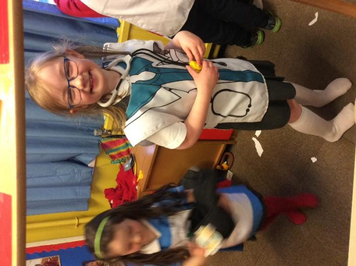 The doctors surgery opened this week where doctors and nurses were taking care of patients who needed medicine or had broken a bone. We made split pin workers, worked together by building puzzles and rescued animals at small world⭐️