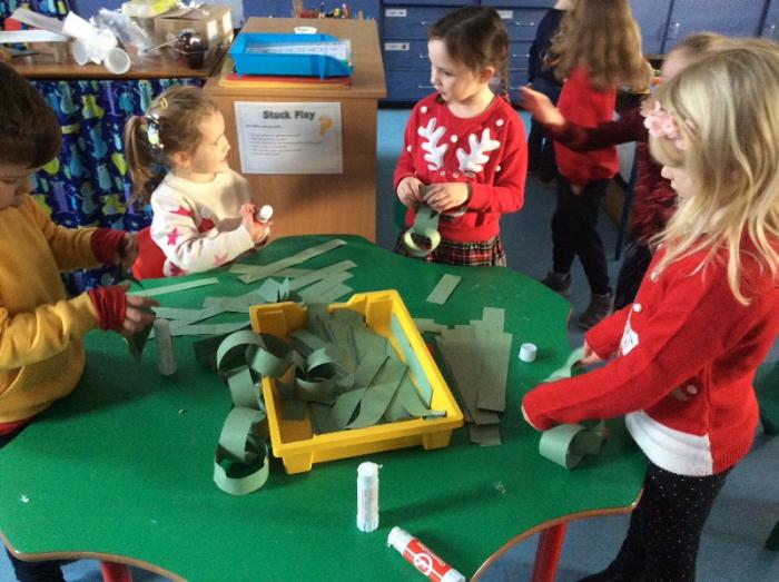 Primary 1 have been busy this week preparing our class for Christmas and exploring how toys work. We have made paper chains, decorated baubles and written labels for presents using our sounds. These are displayed on our sound tree. We explored patterns creating Christmas paper to wrap our toys and to consider how many more presents are needed to make 6. As Christmas approaches we all are thinking about new toys and there has been lots of shopping in our toy shop. At the writing corner the children have been encouraging shoppers to buy toys creating their own For Sale posters advertising toys for sale.We investigated further how magnets work using magnetic wands to move paint balls to create pictures. The children recalled what we learnt in W5 about forces describing if toys worked due to a push, pull or twist force. Water was a popular area as the children investigated how to make boats and water wheels work. They enjoyed building roads and bridge for toy car to travel on and through. Gears proved very popular as children cooperated to create models ensuring movement was achieved using a twist force. Further fun and challenges are planned next week.