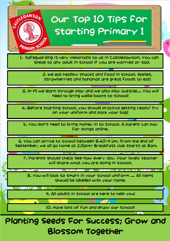 Welcome to the P1 area of our school website. Here you can read about what to expect when your child starts in P1. There is an Induction Booklet with lots of information as well as details about downloading our school app.